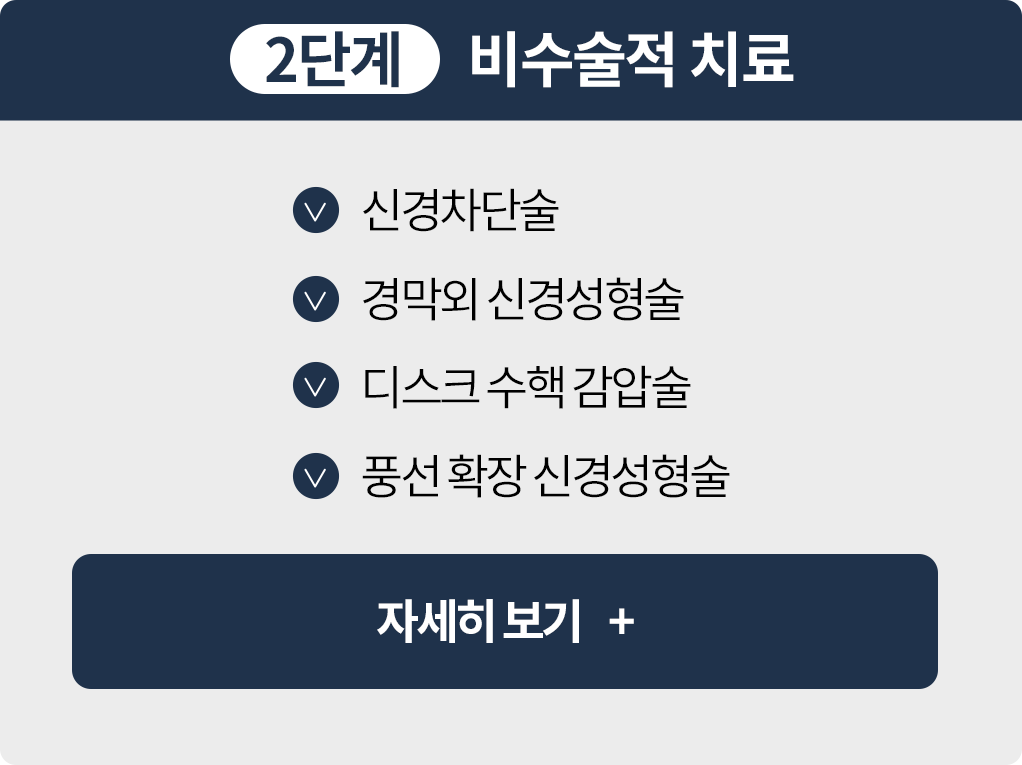 비수술 치료로는 부족한 경우에만 수술적 치료를 신중히 고려하여 안전하고 효과적인 치료를 진행합니다.