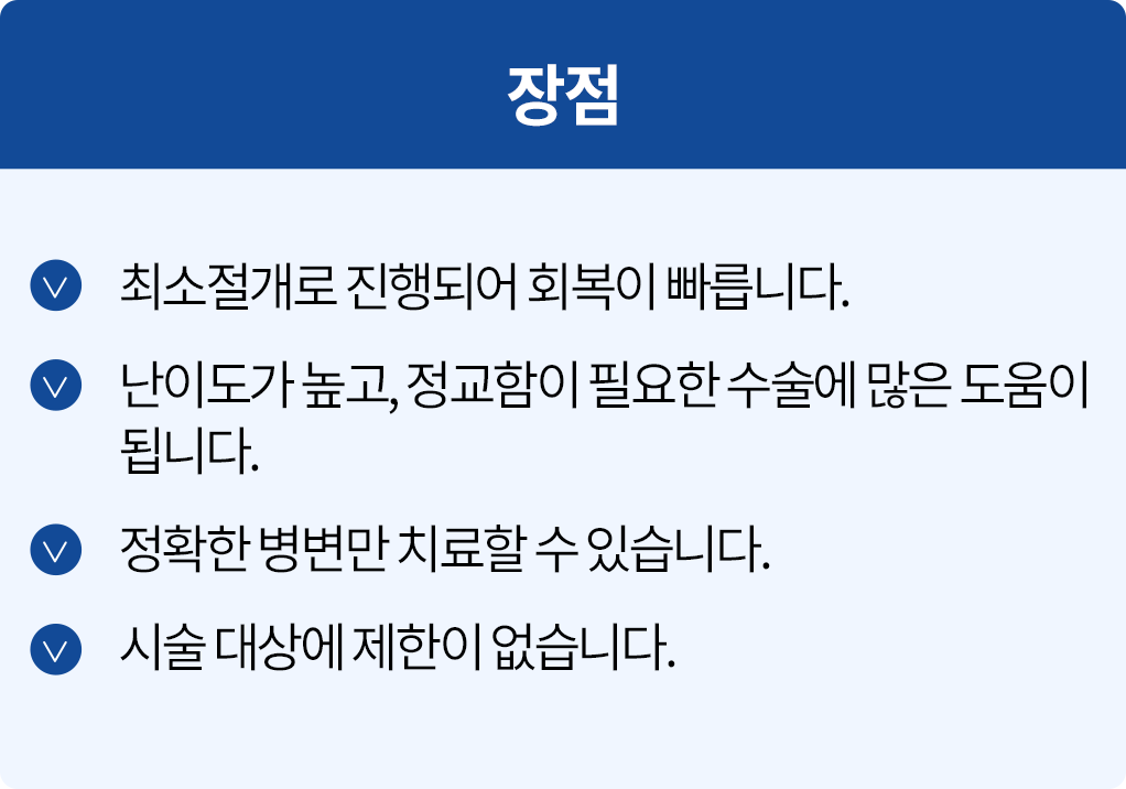정확성이 높아 어렵고 복잡한 수술에 사용되는 최소 침습 수술법