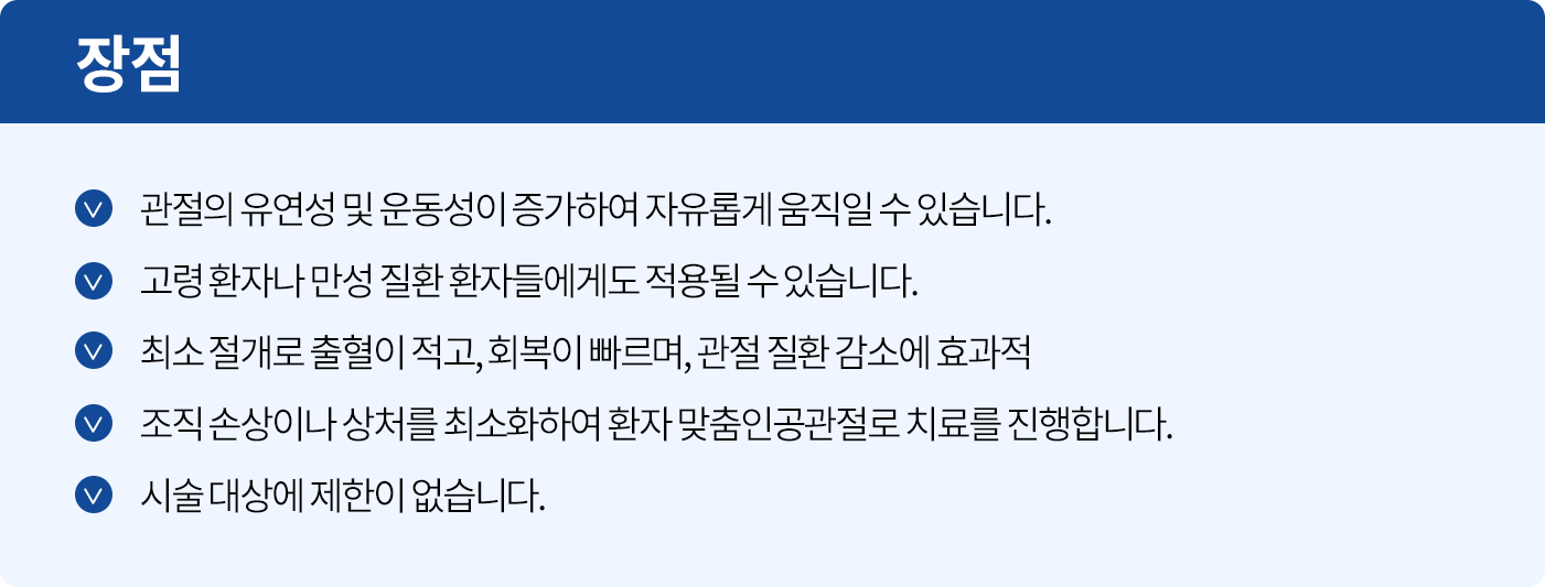 정상생활을 할 수 없고 다른 치료나 시술로 효과가 없는 경우에 시행하는 수술법(부분 치환술, 전 치환술)