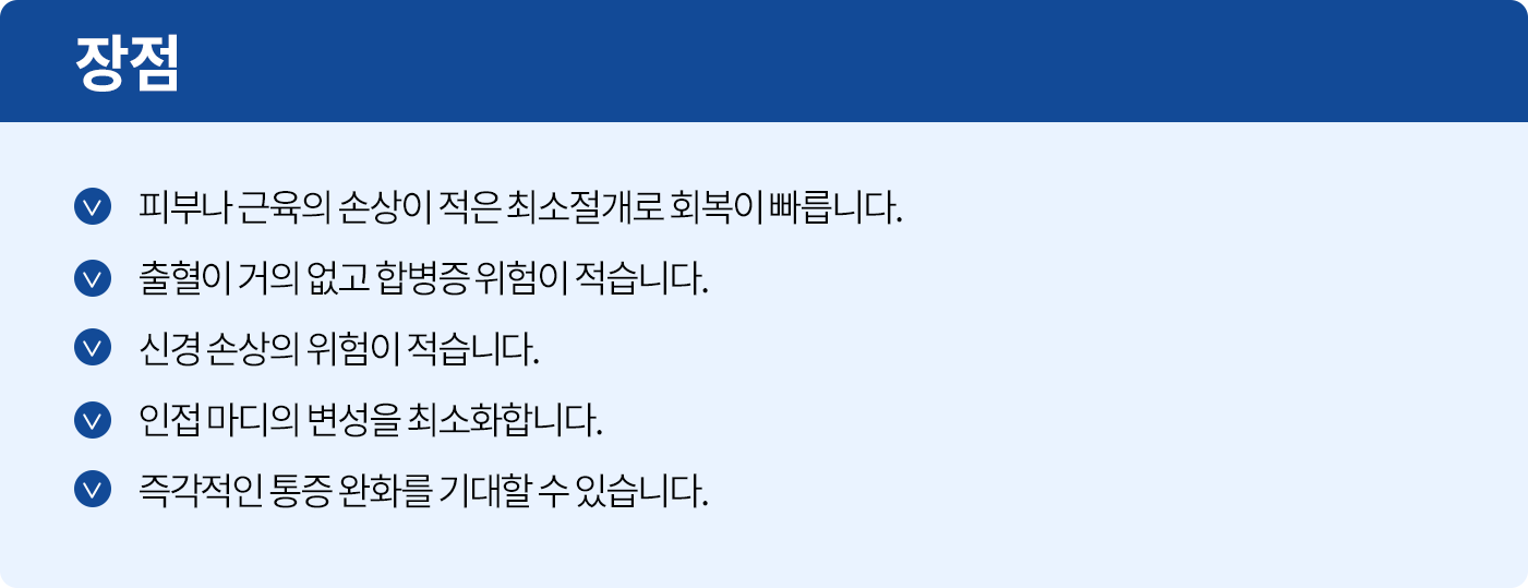 MRI나 CT에서 보이지 않는 병변을 약 1㎝ 내외의 구멍을 내서 관절내시경 기구를 통하여