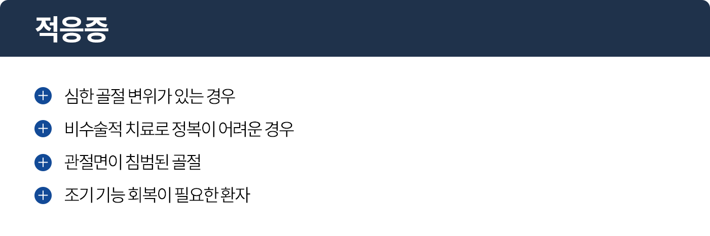 뼈가 안정적으로 붙을 수 있도록 금속판, 나사, 핀 등을 이용해 고정하는 수술
