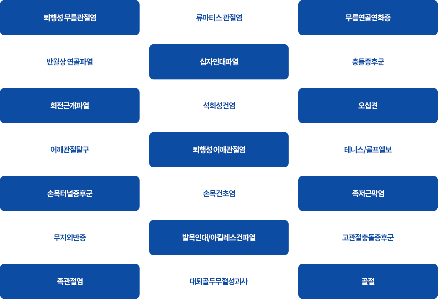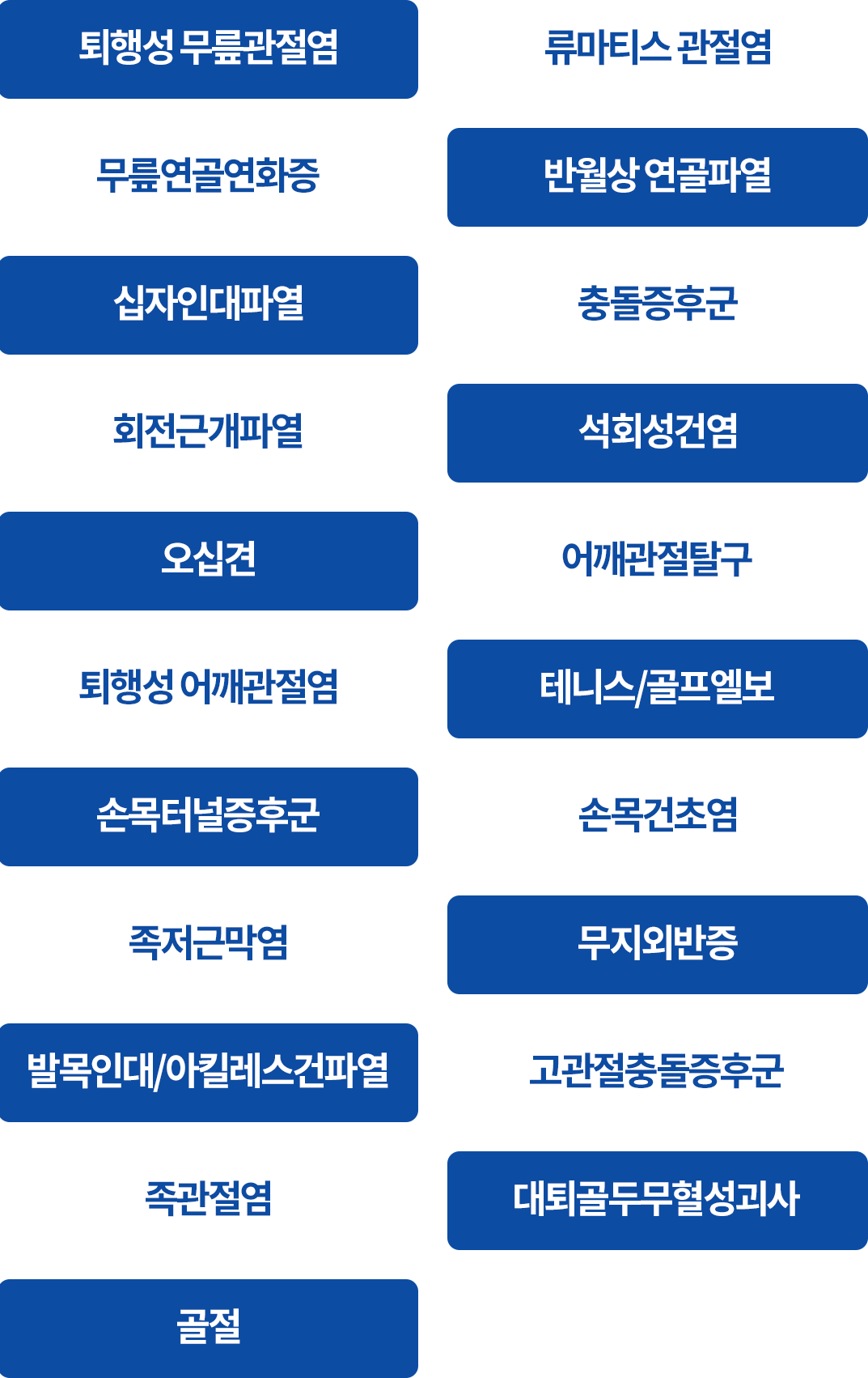퇴행성 질환부터 외상, 스포츠 손상까지